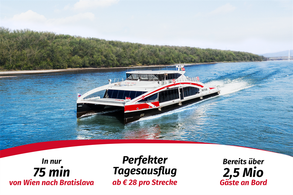 Perfekt für einen gemeinsamen Tagesausflug von Wien nach Bratislava – bequem per Schiff direkt von Stadtzentrum zu Stadtzentrum.